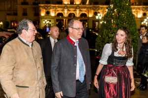 Accueil du Prince Albert II par Tonio et Rebecca Arcaini sur la place du Casino