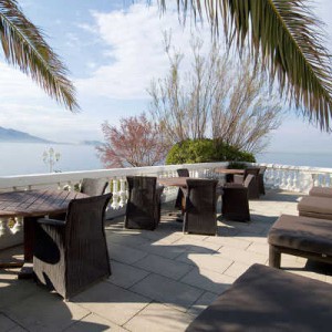 Ce petit palace à fleur d'eau est vraiment unique... Architecture néo-grecque, décoration teintée de modernisme, ciel...